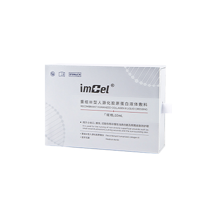 由重组III型人源化胶原蛋白、纯化水制成的溶液和玻璃/塑料/铝瓶材质包装瓶组成。用于小创口、擦伤、切割伤等非慢性浅表创面及周围皮肤的护理。